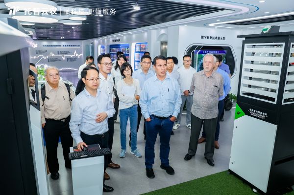 代表團一行參觀了解了托普云農(nóng)在農(nóng)業(yè)智能裝備、產(chǎn)業(yè)大數(shù)據(jù)應用、智慧農(nóng)業(yè)園區(qū)建設等方面的實踐成果與經(jīng)驗,聽取了浙江寧波海曙大田種植數(shù)字農(nóng)業(yè)基地樣板案例的詳細介紹,雙方就智慧農(nóng)業(yè)發(fā)展趨勢等話題進行熱切交流。