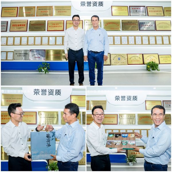 參觀過程中,代表團對托普云農(nóng)在農(nóng)業(yè)科研、生產(chǎn)等領(lǐng)域的科技創(chuàng)新應用實踐給予高度評價,在親切友好的氣氛中,本次交流活動圓滿結(jié)束,托普云農(nóng)董事長陳渝陽與印尼農(nóng)業(yè)部長阿姆蘭?蘇萊曼作為雙方代表合影留念并互贈禮物。