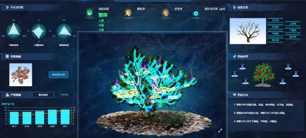 推動(dòng)智慧大棚種植,促進(jìn)楊梅樹矮化培育,不僅方便梅農(nóng)和游客采摘,也隔絕了外界不利的自然條件。在智慧大棚內(nèi)裝上智能控制系統(tǒng),設(shè)置氣象站、土壤墑情監(jiān)測(cè)站、蟲情測(cè)報(bào)燈等一系列監(jiān)控設(shè)備,實(shí)現(xiàn)遠(yuǎn)程監(jiān)控、綠色防治。即便梅農(nóng)不在山上,也能通過手機(jī)遠(yuǎn)程調(diào)節(jié)大棚環(huán)境:溫度過高、濕度過低時(shí),大棚卷膜會(huì)自動(dòng)打開,噴灌系統(tǒng)智能噴水;土壤肥力不足時(shí),通過手機(jī)就可以控制農(nóng)機(jī)自動(dòng)施肥。建立楊梅生長(zhǎng)適應(yīng)性模型和剪枝模型,實(shí)現(xiàn)對(duì)楊梅生長(zhǎng)全過程的模擬預(yù)測(cè),科學(xué)實(shí)時(shí)地指導(dǎo)梅農(nóng)進(jìn)行剪枝、除草、打藥、養(yǎng)護(hù)等農(nóng)事活動(dòng)。在精密的數(shù)字化調(diào)控下,大棚楊梅保持了較好的品質(zhì),降低了人力成本,楊梅產(chǎn)量和梅農(nóng)收入也得到了大幅提升。