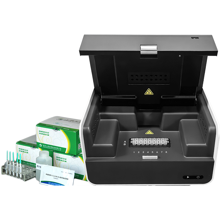 配置標(biāo)準(zhǔn)規(guī)范:基于專業(yè)實驗室基礎(chǔ),新型轉(zhuǎn)基因快速檢測儀,采用專用的試劑盒(含快速提取試劑+PCR反應(yīng)試劑),專用PCR儀(16通道)。