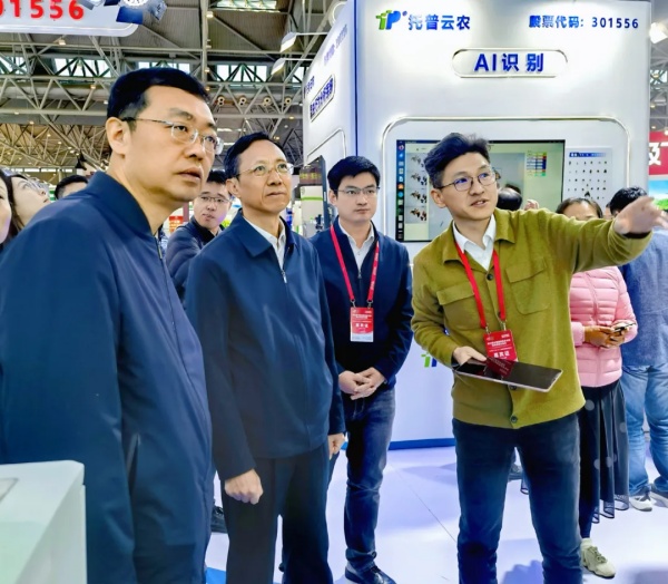 展會現(xiàn)場,托普云農(nóng)攜一系列植?!昂诳萍肌绷料?,分別陳列人工智能測報區(qū)、人工智能體驗區(qū)、數(shù)字模型應用區(qū)、無人機巡檢區(qū)、數(shù)智植保閉環(huán)區(qū)、綠色防控區(qū)6大板塊,受到了與會嘉賓的廣泛關注。